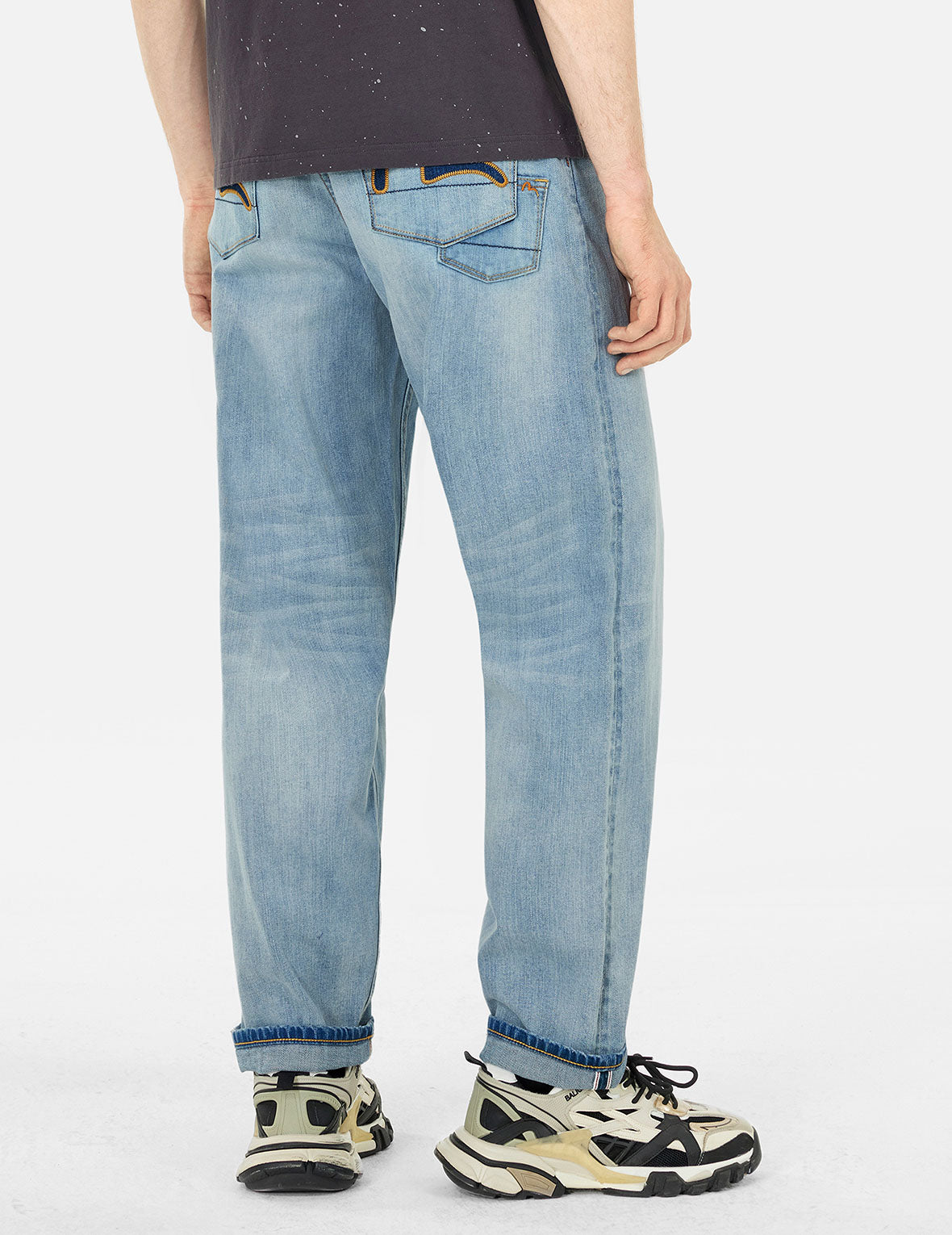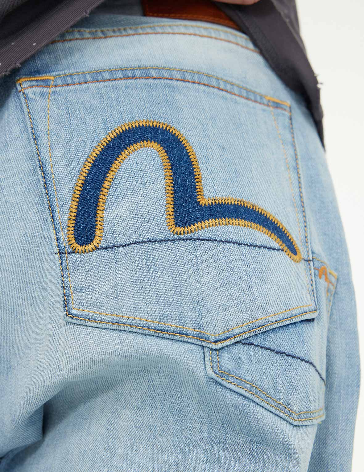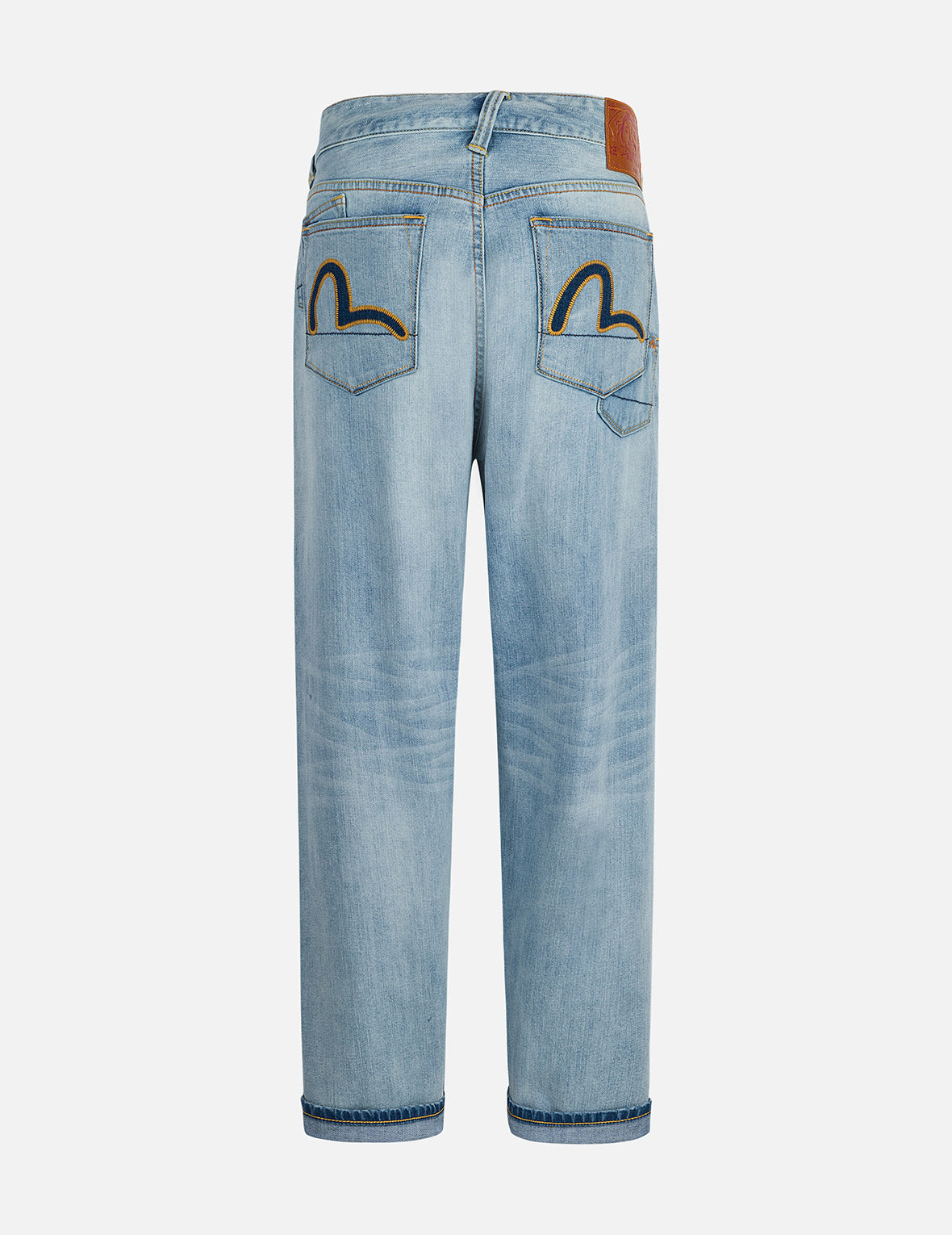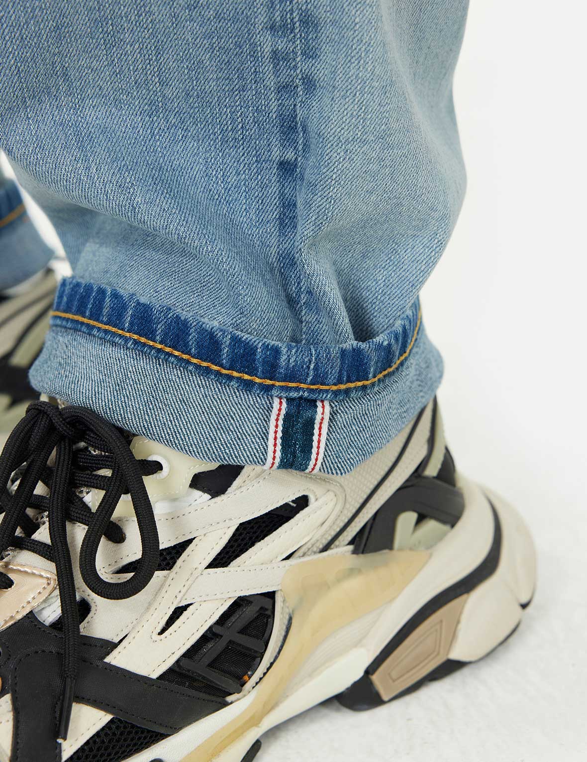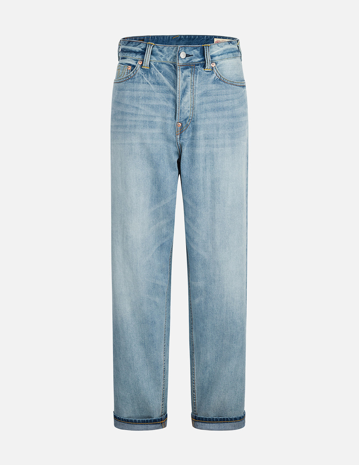 Featuring a relaxed straight-cut, this latest design by the brand is ideal for all body types and is widely loved. The light tone shade, combined with a 7-pocket style and seagull patchs on the back pockets, provides a casual aesthetic when the hems are rolled, showcasing a natural charm.