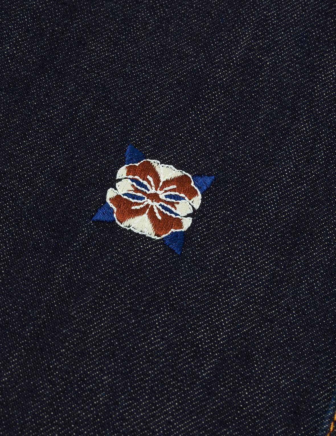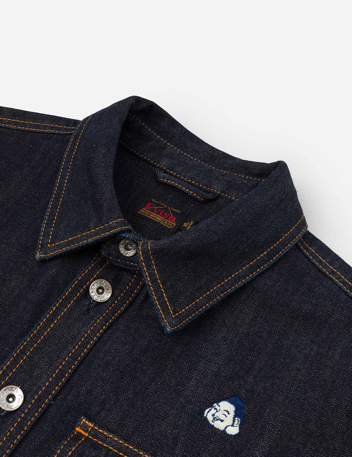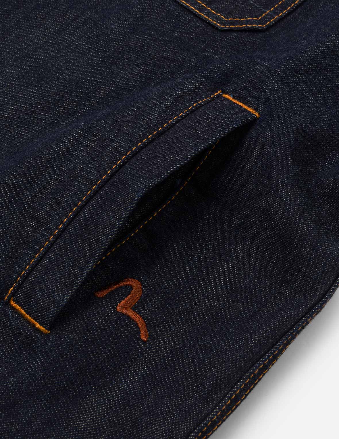 This denim shirt jacket showcases EVISU's exquisite craftsmanship with its unique playful theme and rich embroidery elements. The jacket is adorned with a variety of embroidered patterns, including the Godhead, Seagull, and Kamon, reflecting the brand's classic features and cultural significance while enhancing visual appeal and creativity