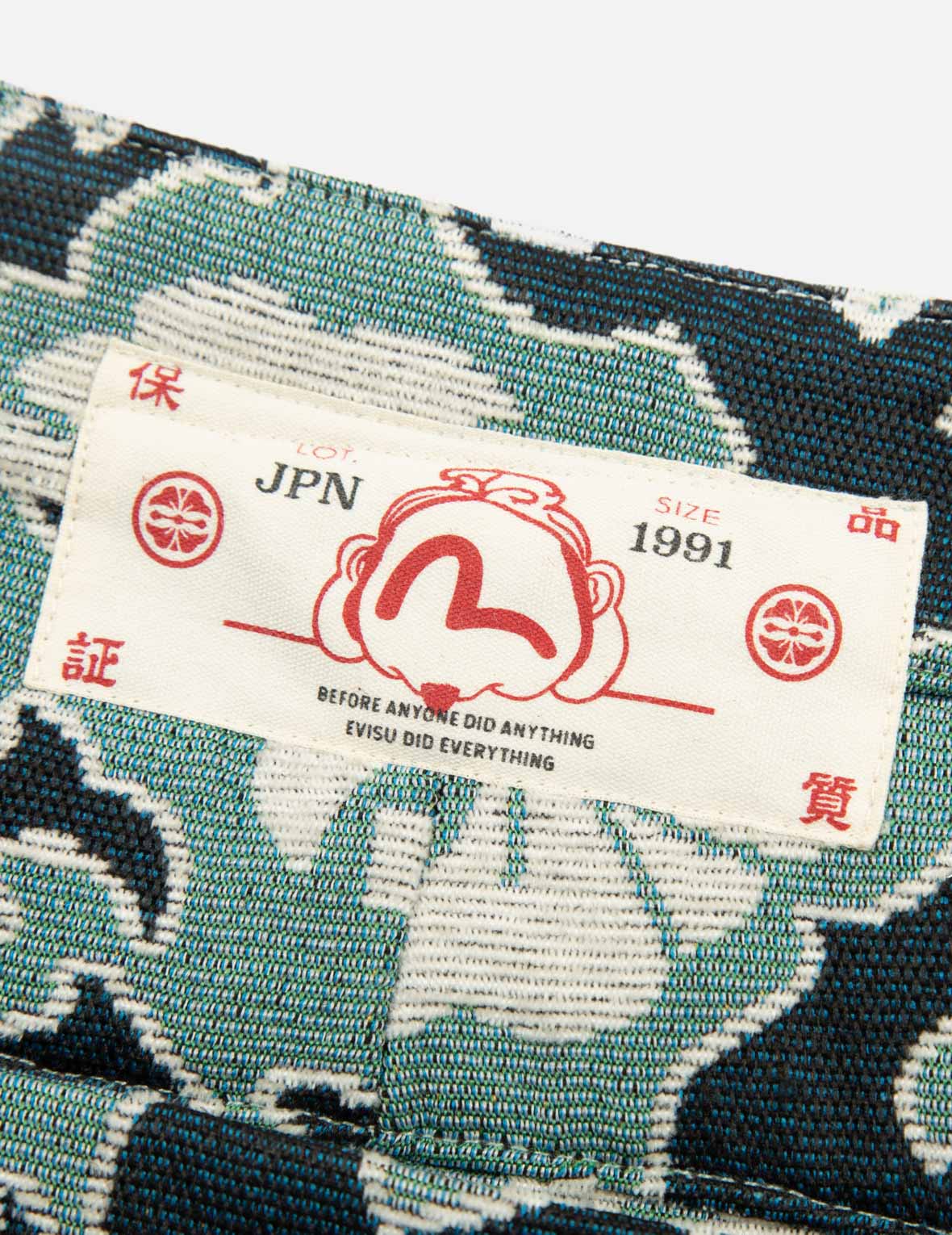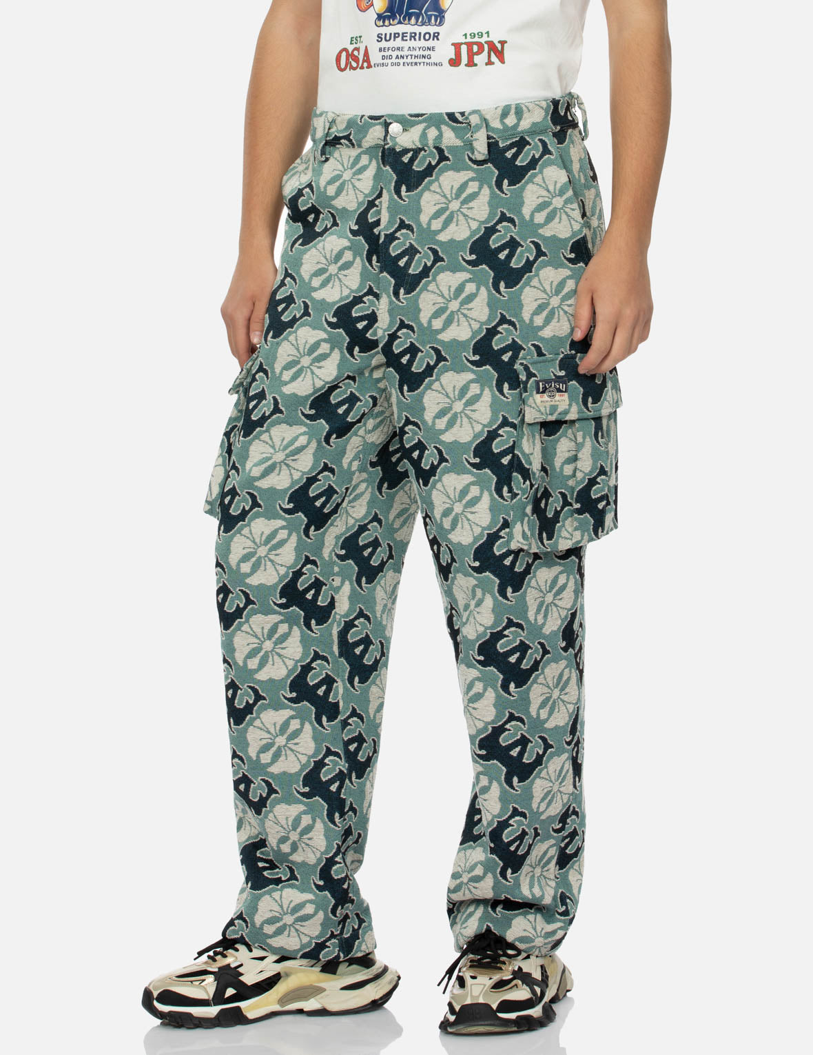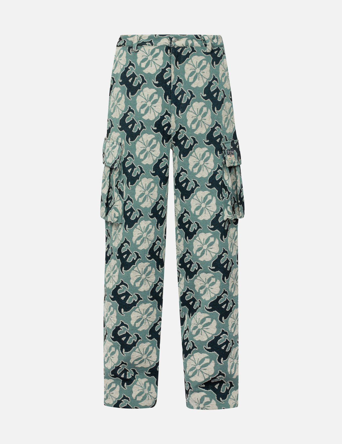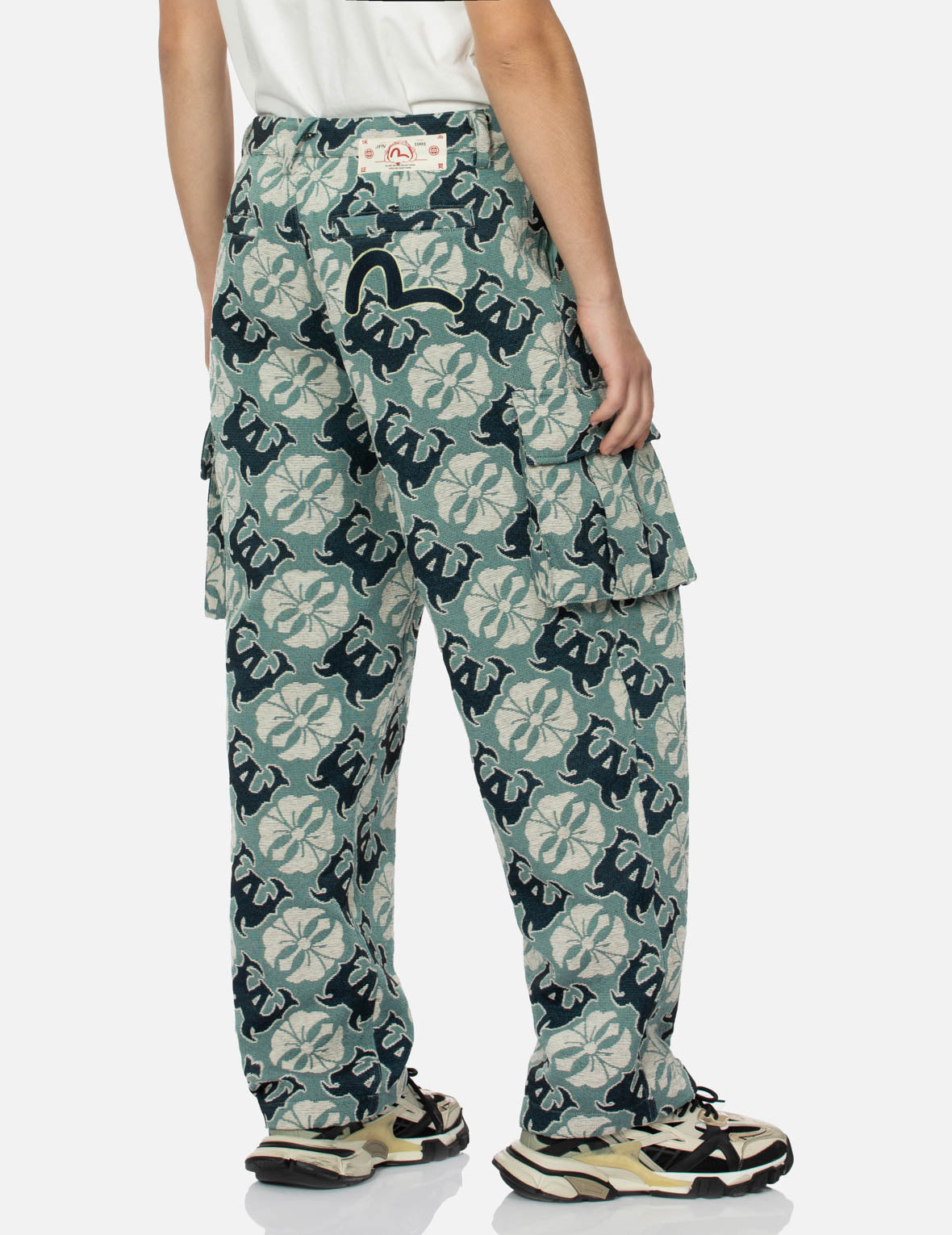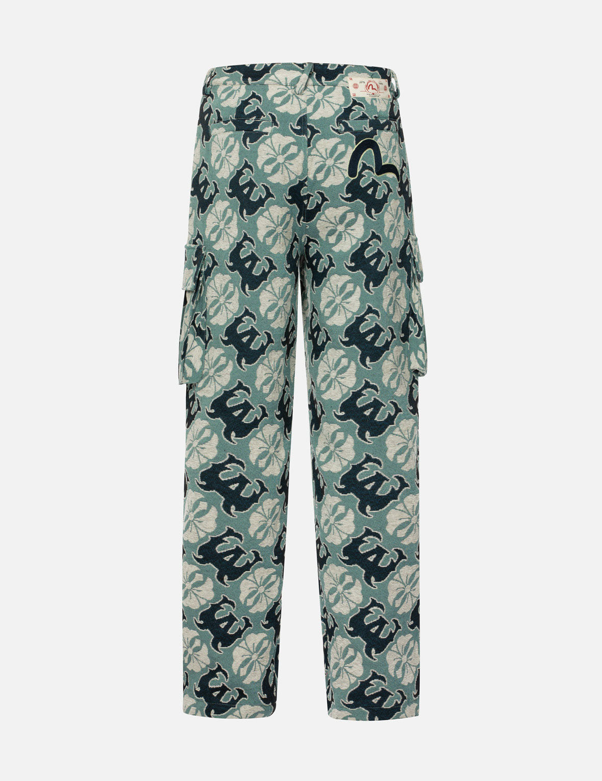 Allover Kamon and Logo Jacquard Wide Leg Tapestry Cargo Pants