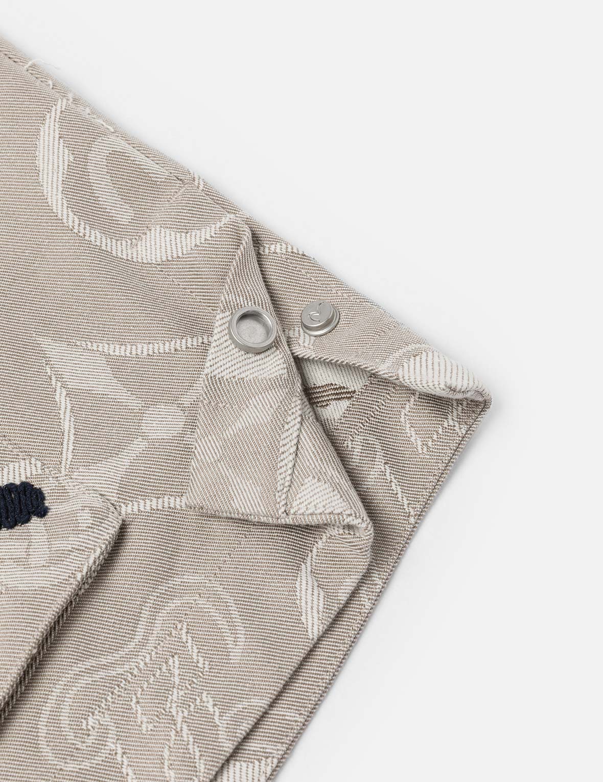 This stylish hoodie is adorned with an allover Kamon and seagull jacquard pattern, featuring elegant seagull embroidery on the pockets for extra detail. The back showcases an Indian totem and brand logo embroidery, boosting its distinctiveness and brand presence.