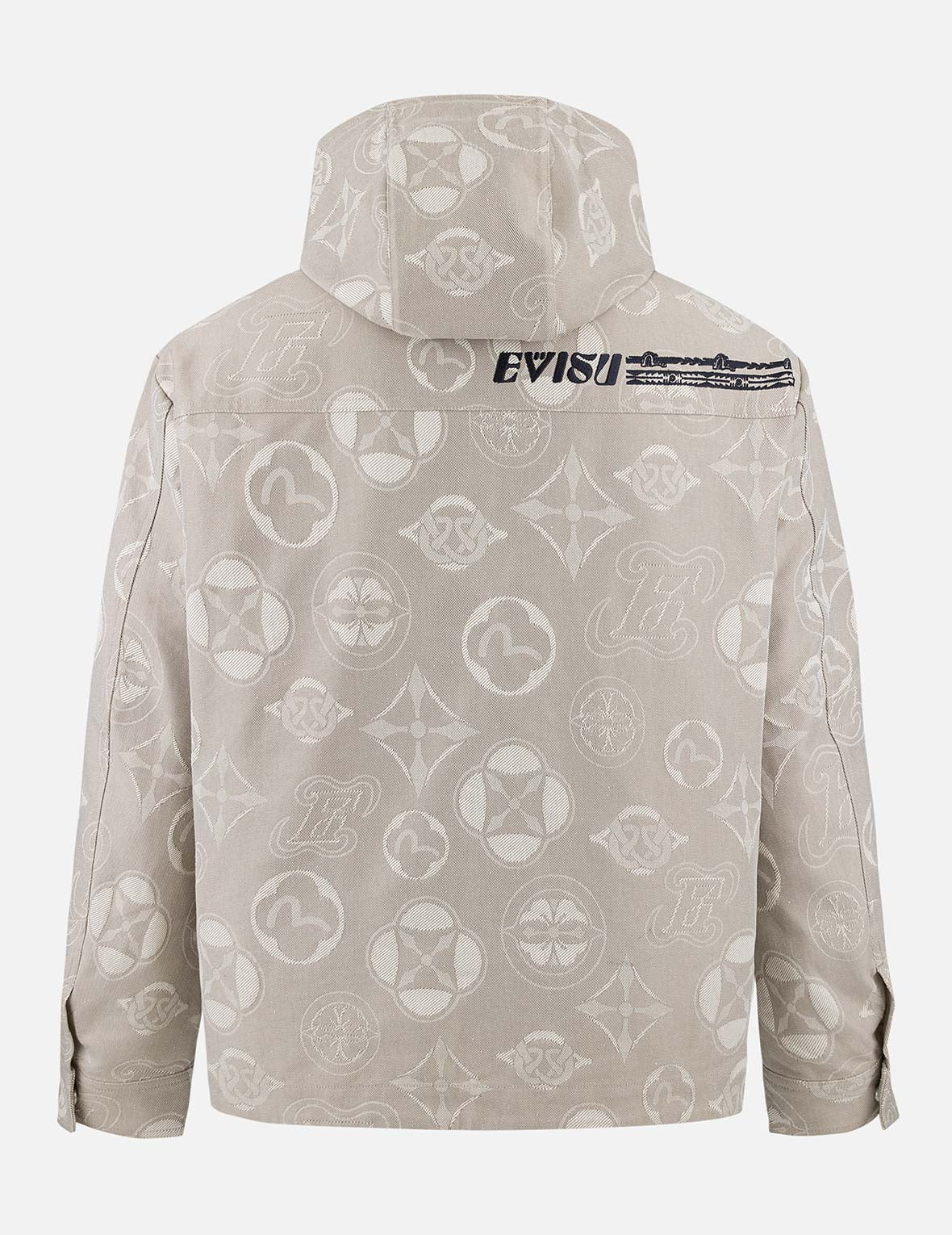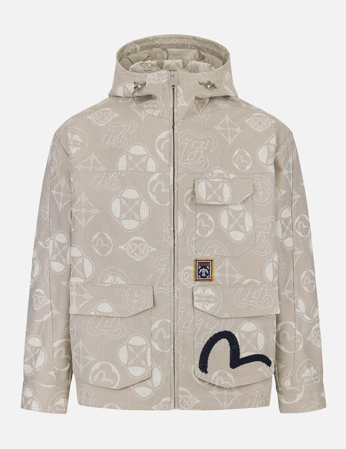 Allover Kamon and Seagull Jacquard Relax Fit Hooded Jacket