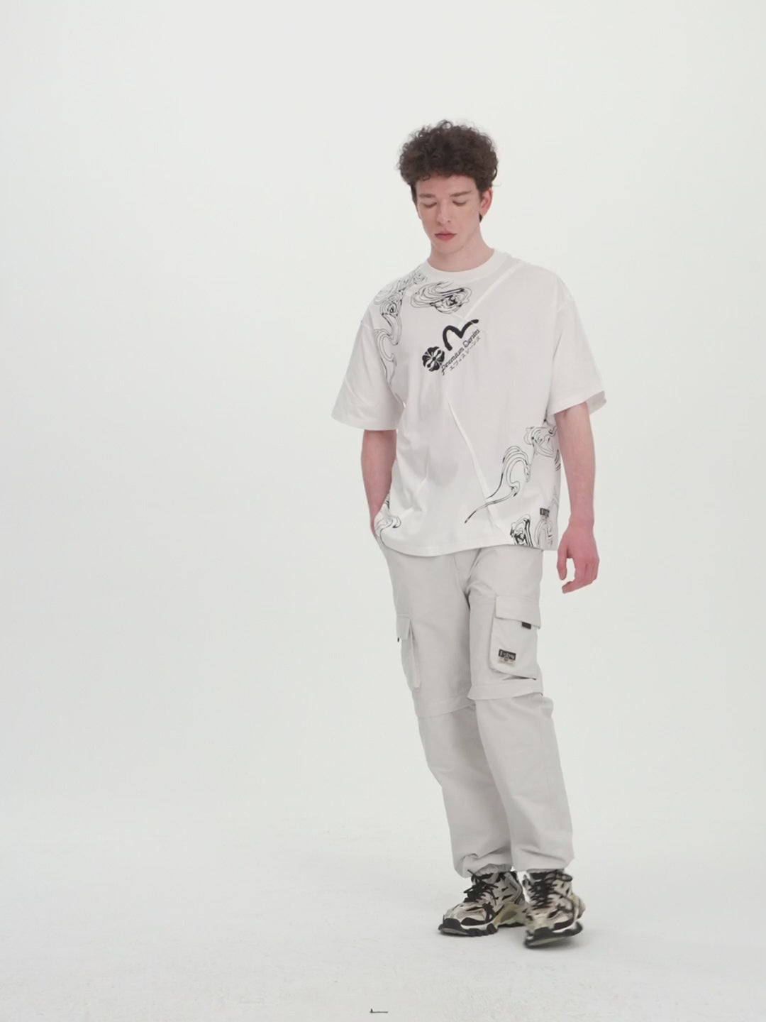 Kamon and Logo Prints Detachable Leg Panel Fashion Fit Woven Cargo Jogger