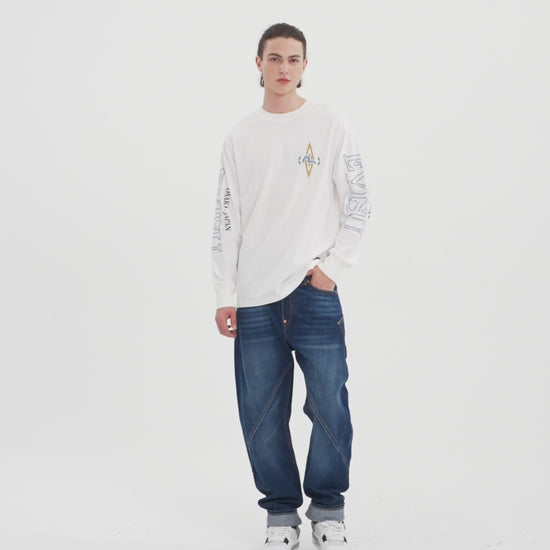 Daruma and Logo Print Fashion Fit Long-Sleeve T-Shirt
