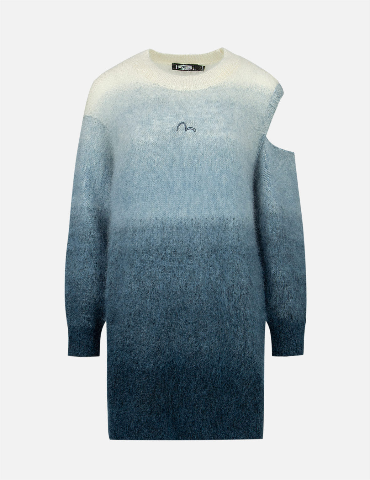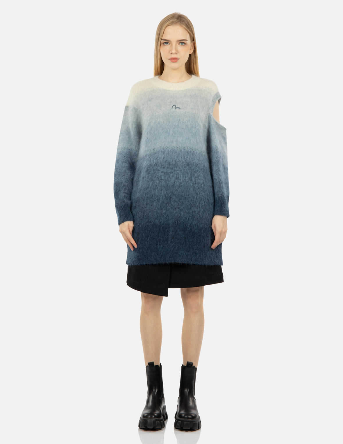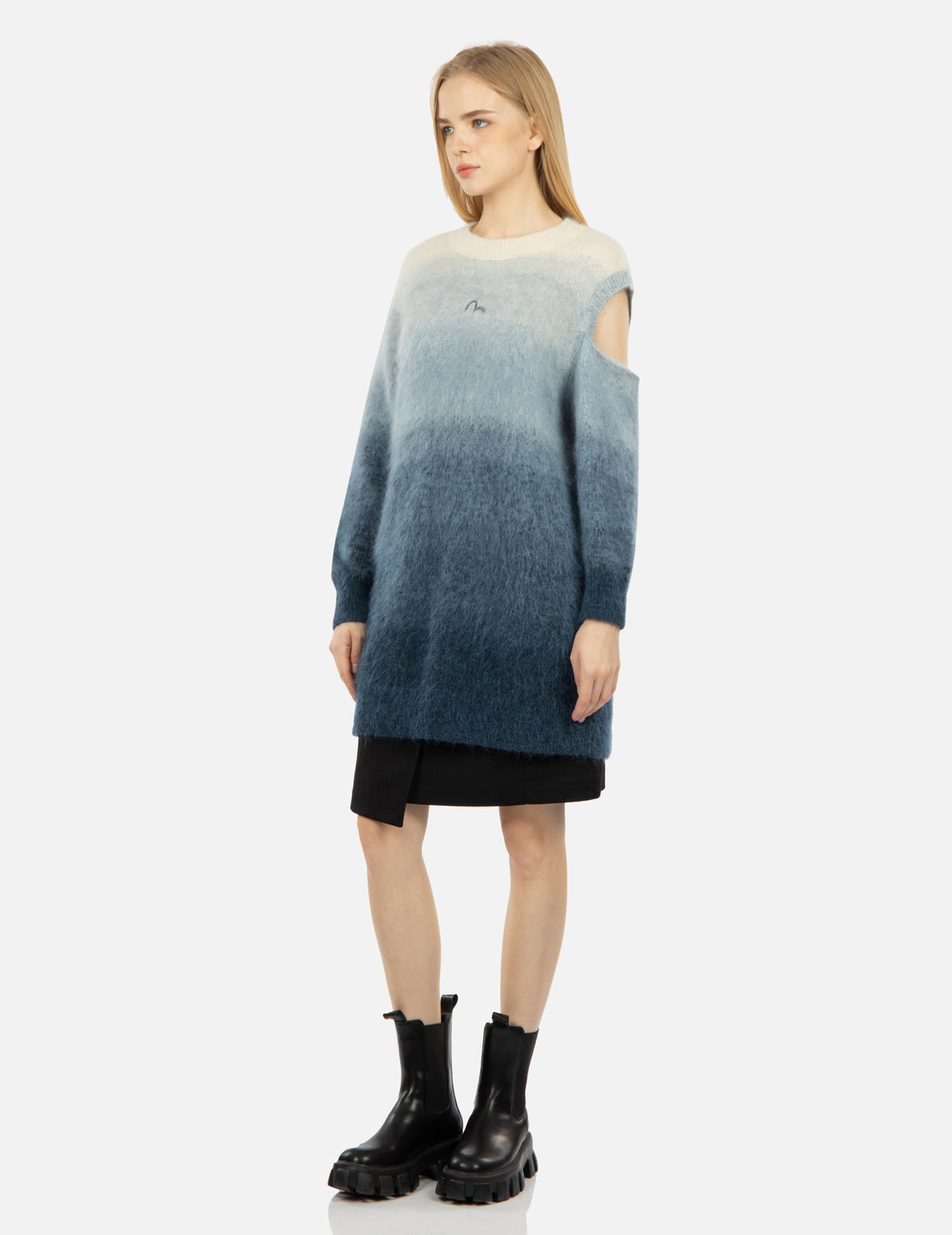 A skillful play on asymmetry, this oversized knit dress features single cut-off shoulder as well as gradient color design to put together a uniquely stylish appearance. This piece will add a cozy touch to your street-cool ensemble.