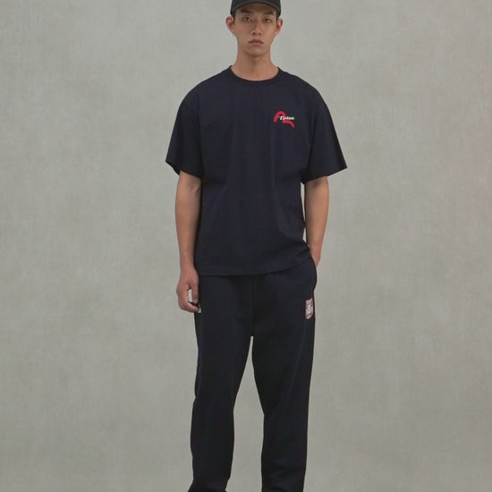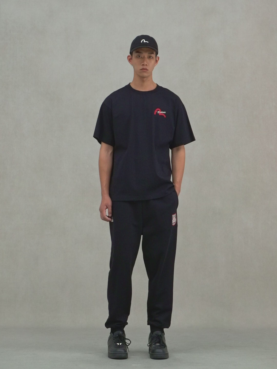 This T-shirt interprets understated luxury with a deep black base, radiating bold sophistication! The back is decorated with a Henohenomohe Godhead print, featuring facial expression kanji highlighted by delicate embroidery to showcase refined craftsmanship. The front’s seagull and logo prints deliver a sharp contrast, exuding a cutting-edge attitude that sets you apart on the streets!