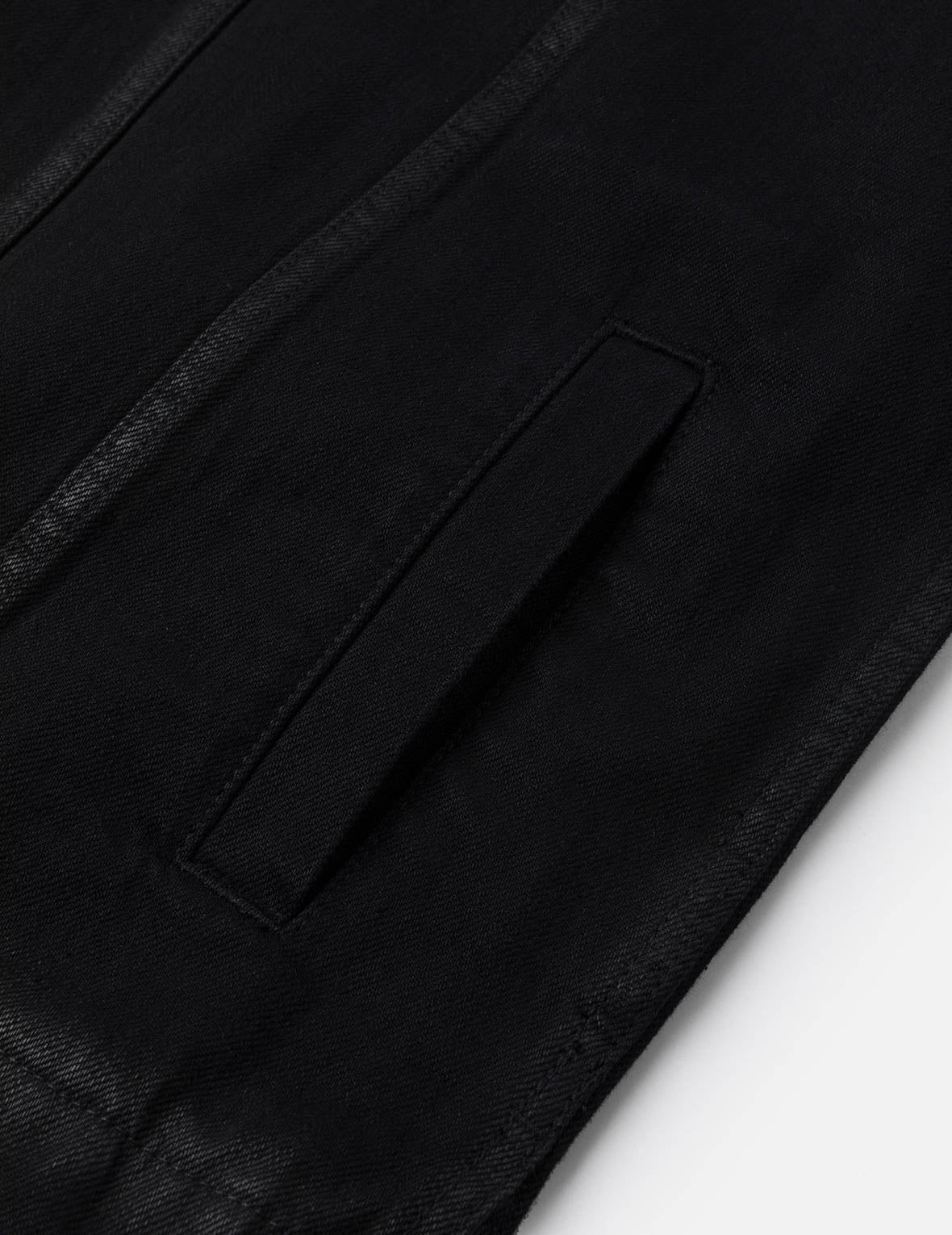 This denim jacket shirt features a Kamon and Seagull applique design, with coated seams and appliques that create a subtle shimmering effect from different angles. Its unique material and detail design showcase a blend of fashion and individuality, making it suitable for various occasions.
