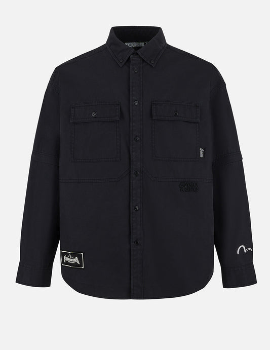 Logo and Seagull Embroidery with Detachable Sleeves Loose Fit Shirt Jacket