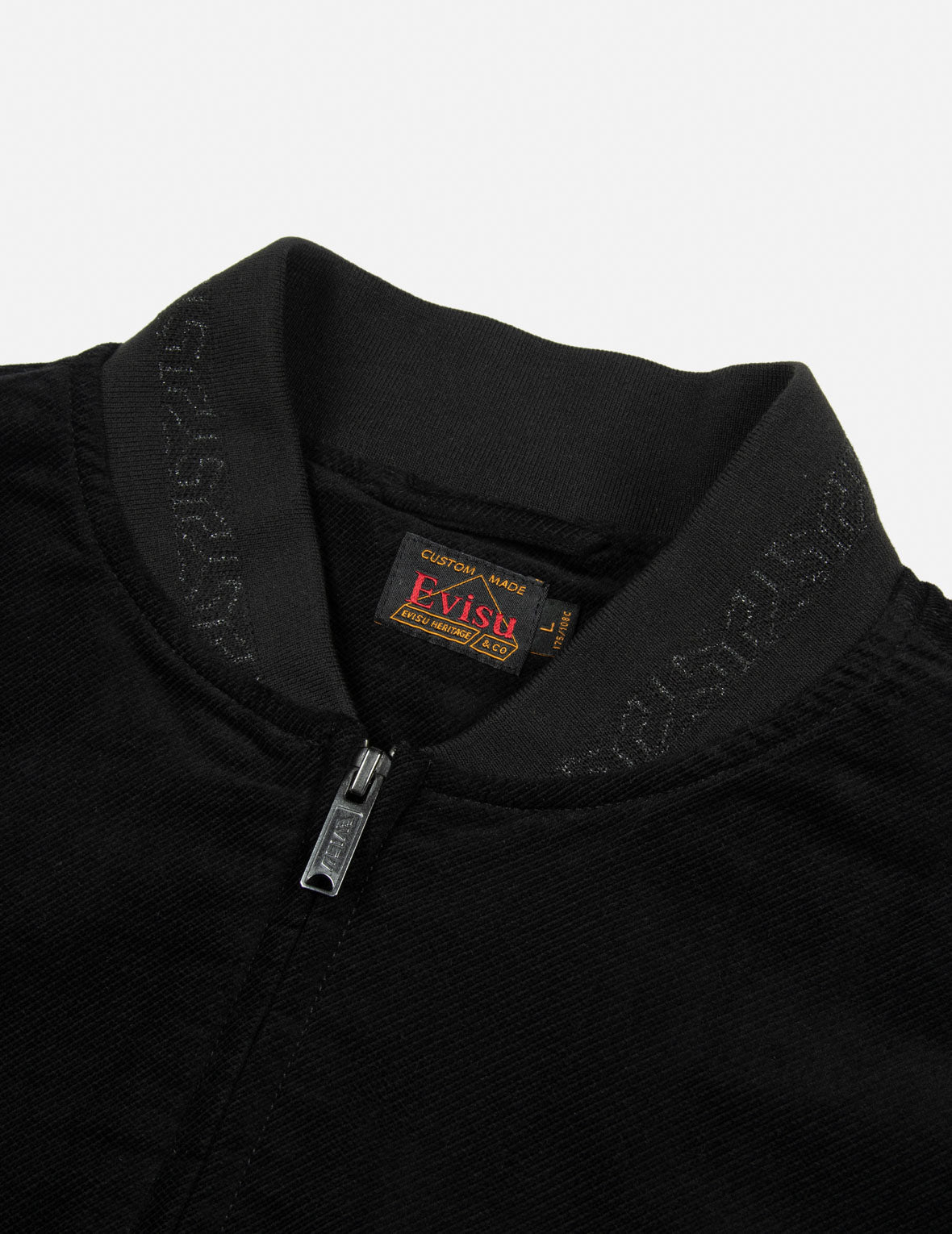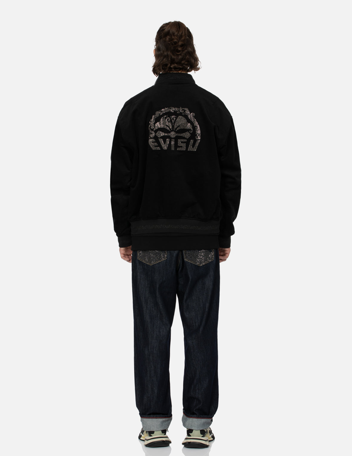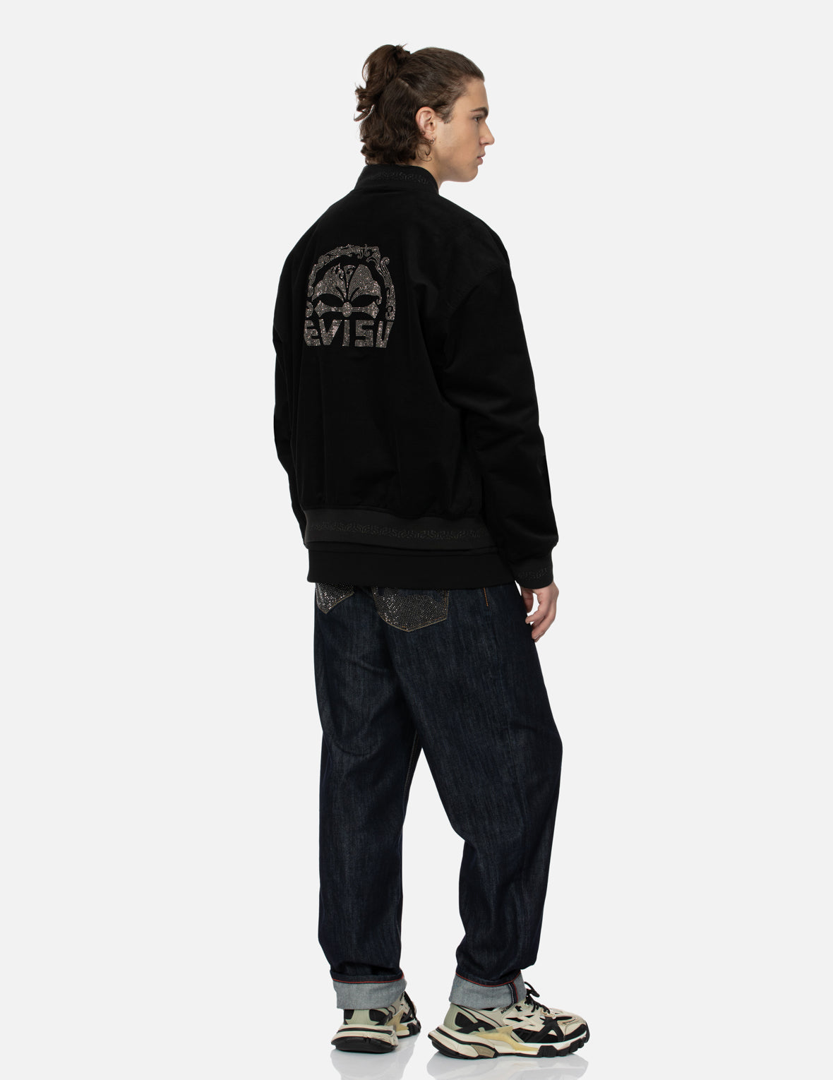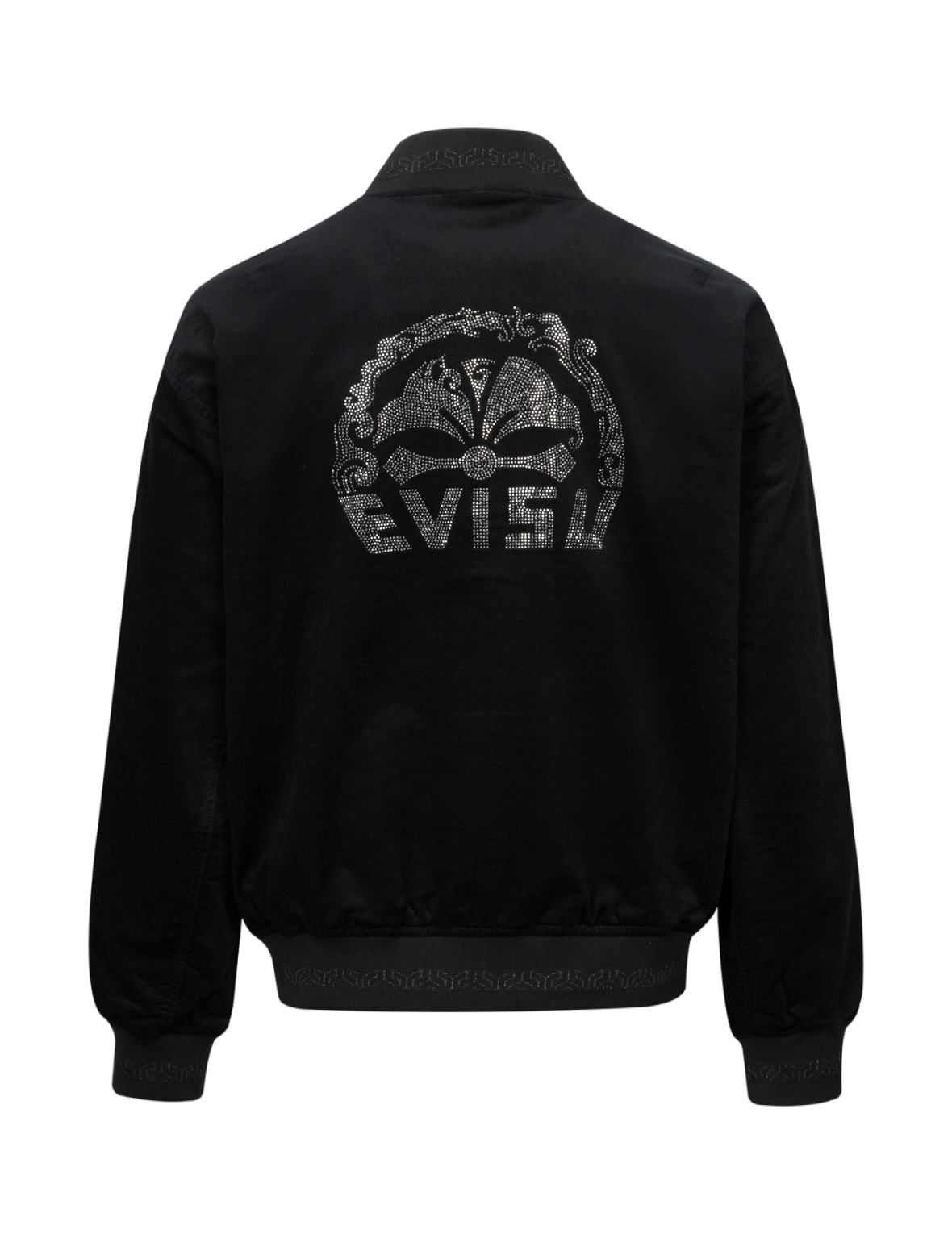 EVISU is renowned for its eye-catching designs: this bomber jacket sports a roomy cut, with a seemingly plain front, but the back is embellished with a captivating crystal-embroidered Kamon pattern and brand logo, revealing the brand's exceptional creative prowess.