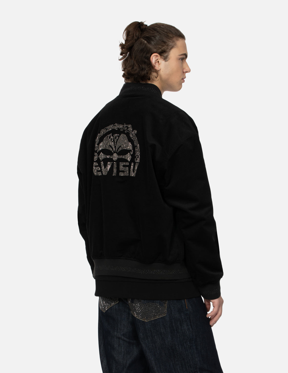 Rhinestone Kamon and Logo Relax Fit Bomber Jacket