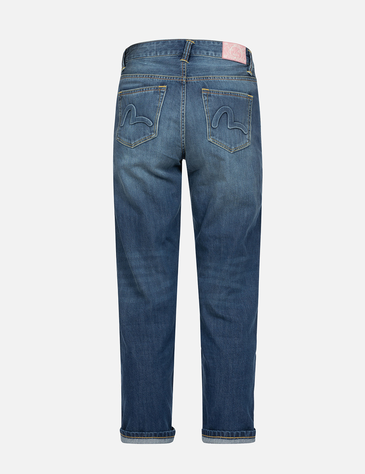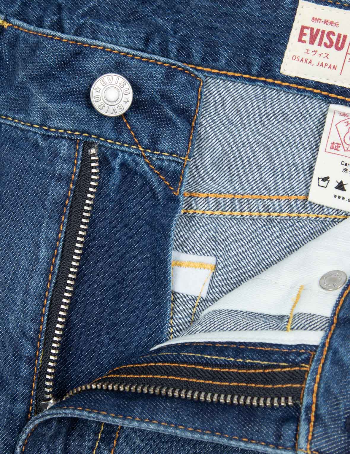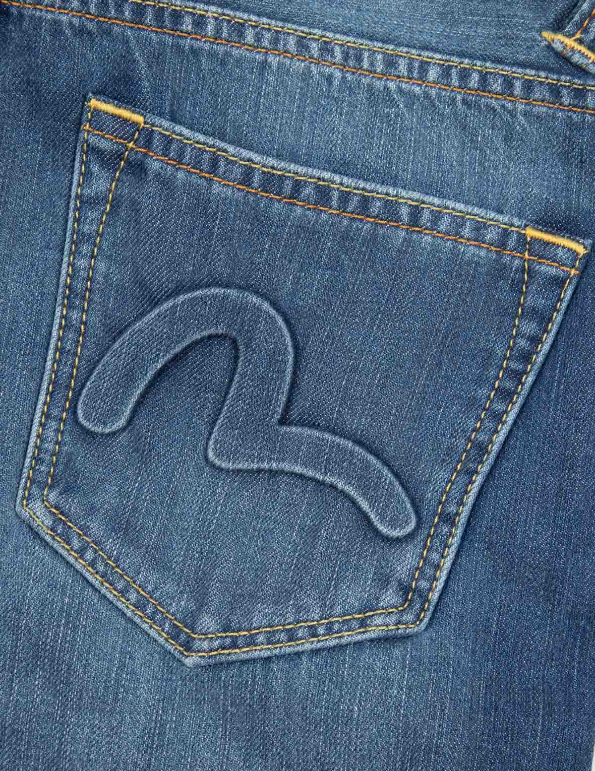 Whether it's for everyday wear or casual style, EVISU jeans bring a unique charm to your look. This pair of jeans features seagull embossed pockets, adding visual appeal and showcasing attention to detail and creative design. They are both fashionable and comfortable.