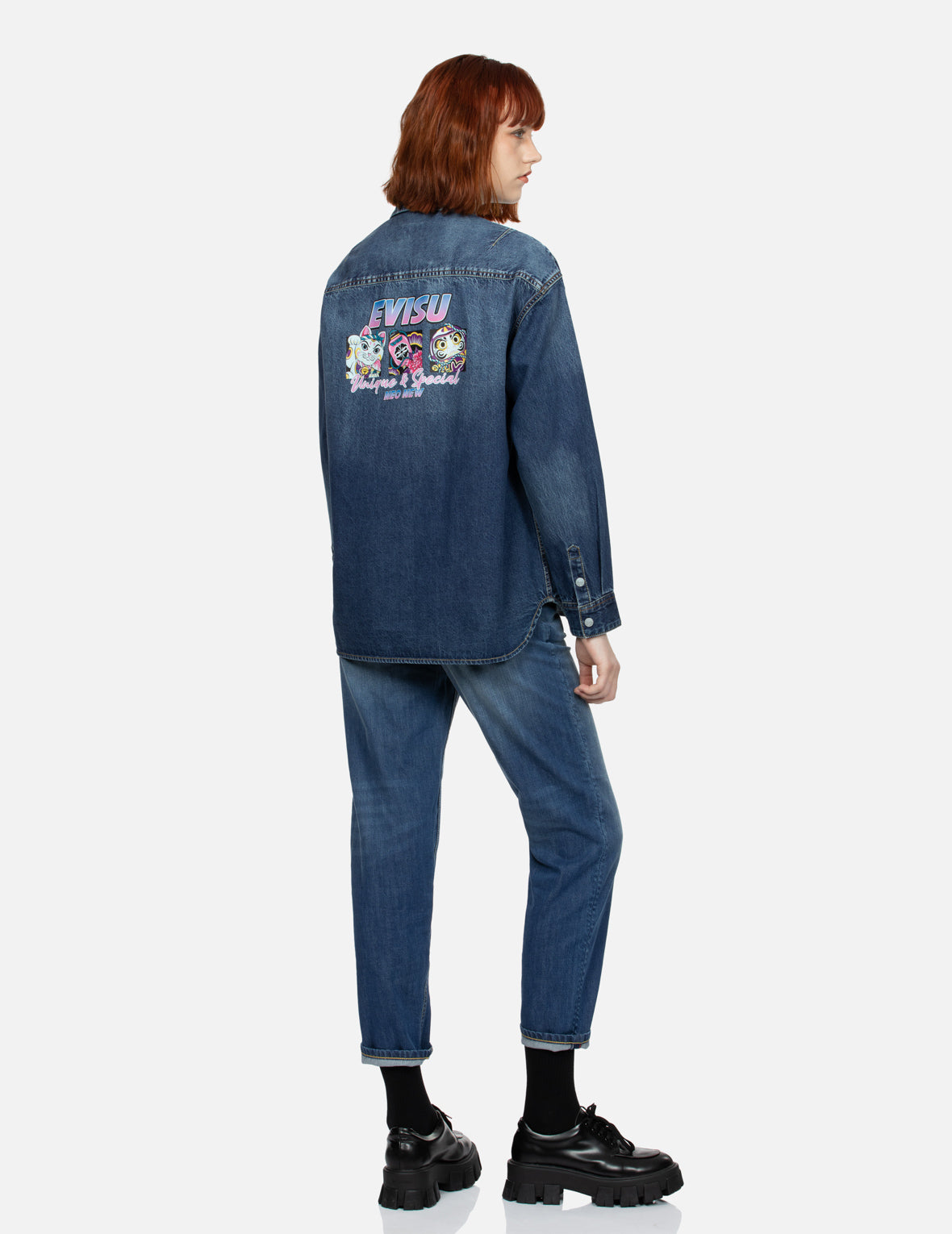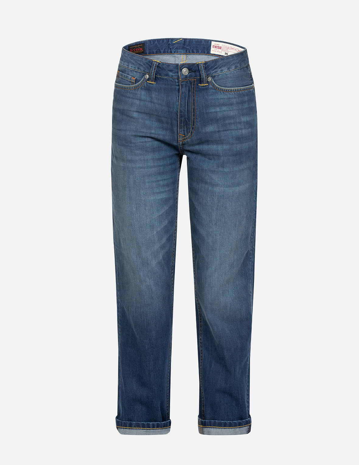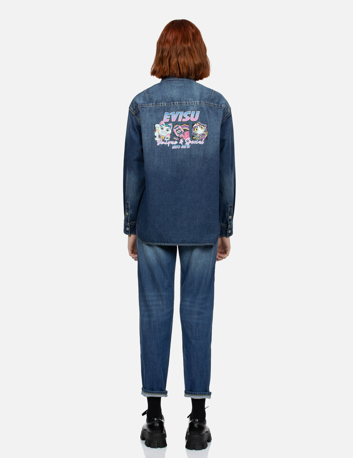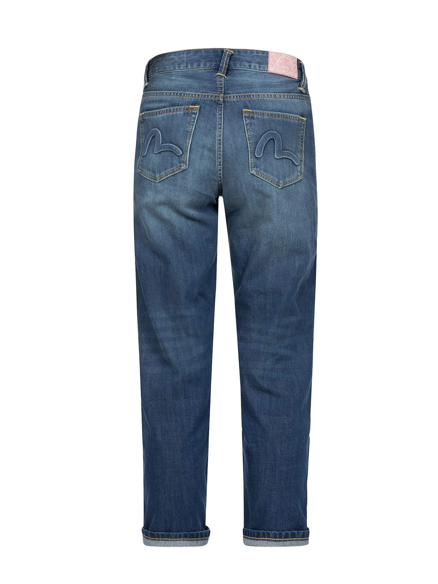 Whether it's for everyday wear or casual style, EVISU jeans bring a unique charm to your look. This pair of jeans features seagull embossed pockets, adding visual appeal and showcasing attention to detail and creative design. They are both fashionable and comfortable.