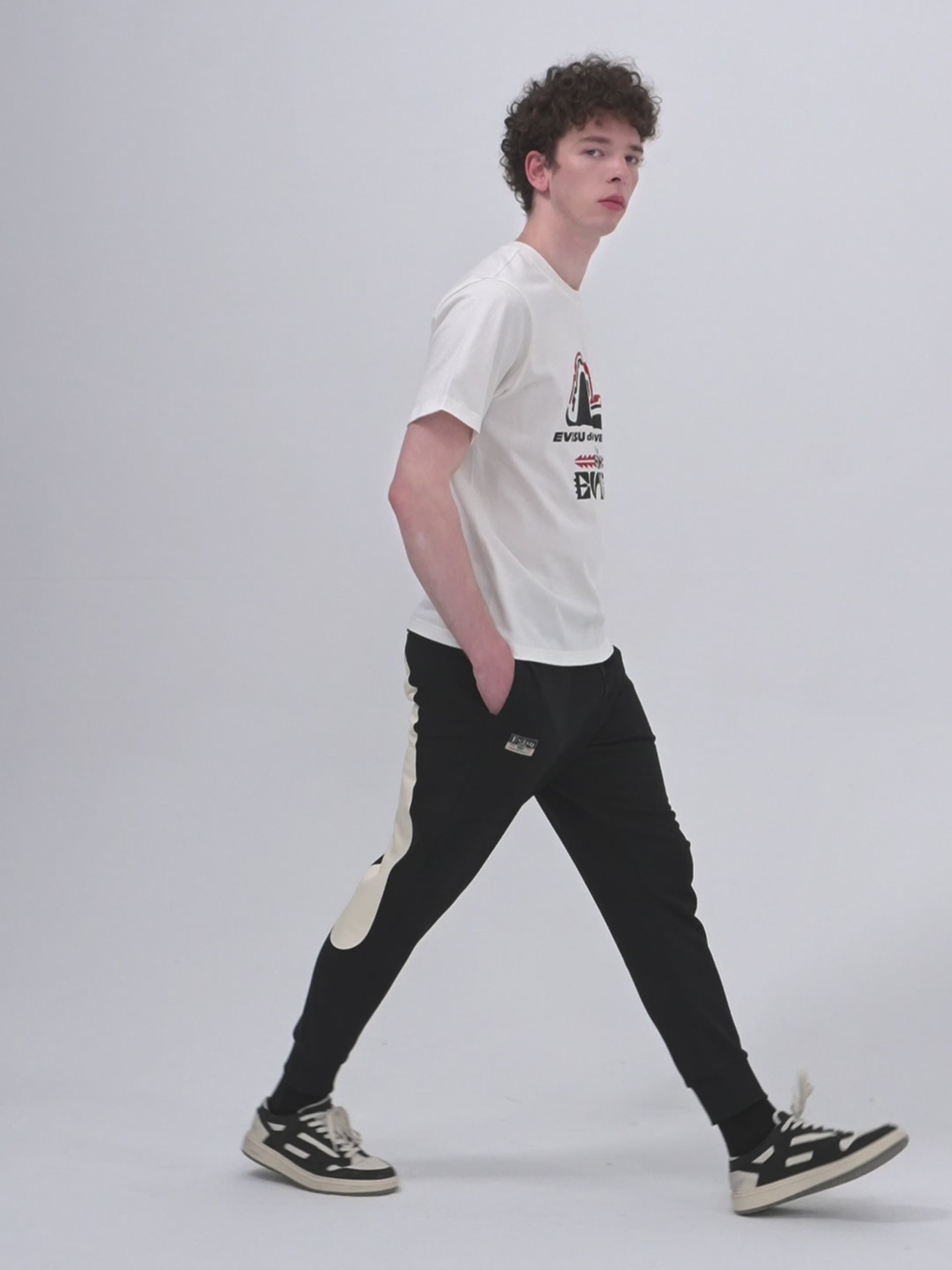 This pair of EVISU sweatpants features a striking front print of the brand's logo, showcasing its personality and style. Interestingly, the Daicock on the back cleverly intertwines with the brand's classic Seagull pattern, creating a creative visual effect that adds a playful touch to the overall design.