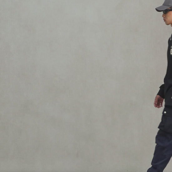 這款梭織束口工裝褲採用個人化水洗及刷白做舊工藝,凸顯自然磨蝕的穿著感,完美演繹粗獷復古質感。後袋以雙重海鷗圖案與EVISU商標刺繡標籤點綴,增添藝術層次與品牌辨識度。多重工裝口袋設計兼具實用與潮流態度,束口細節更顯隨性個性,打造叛逆與優雅的絕妙碰撞。