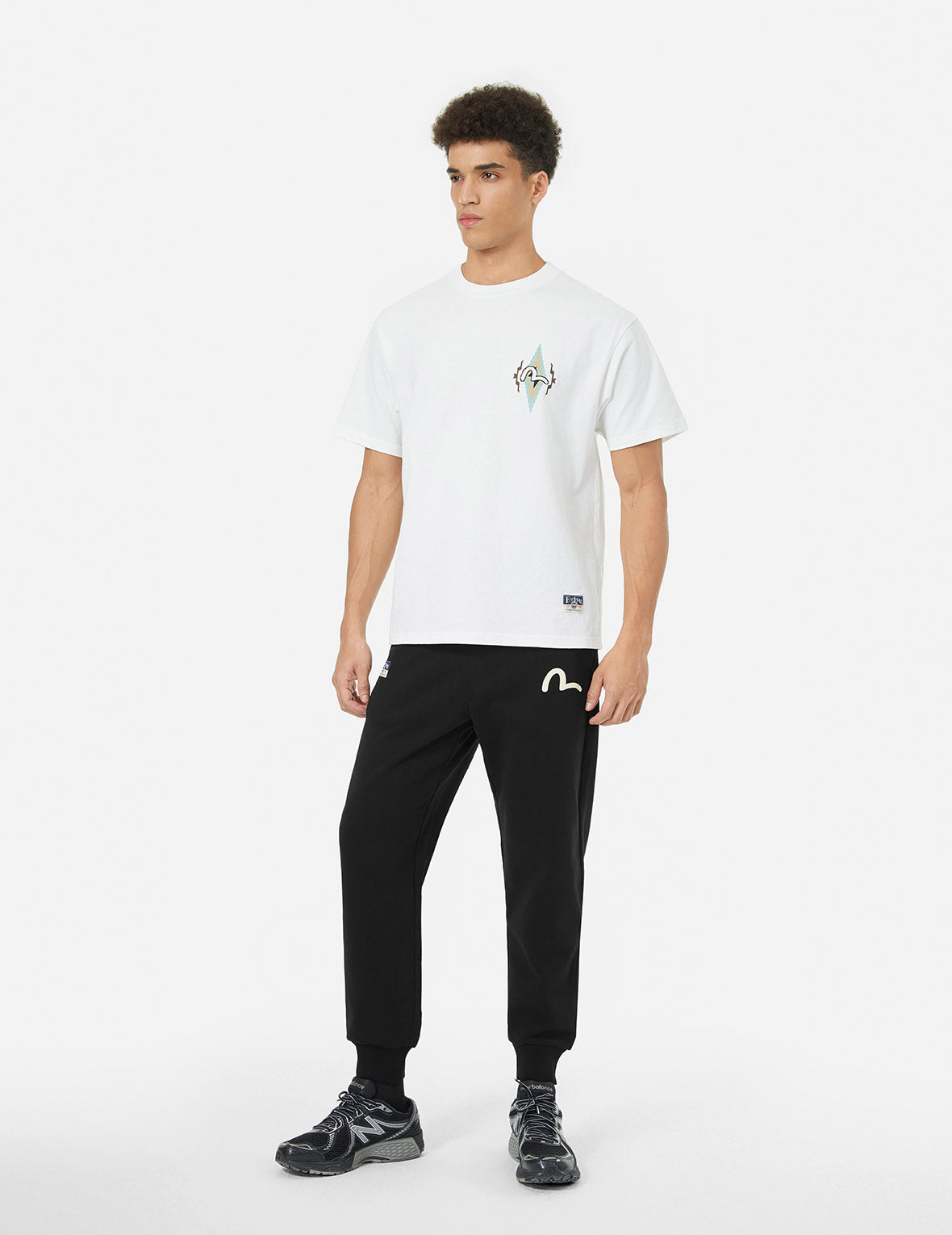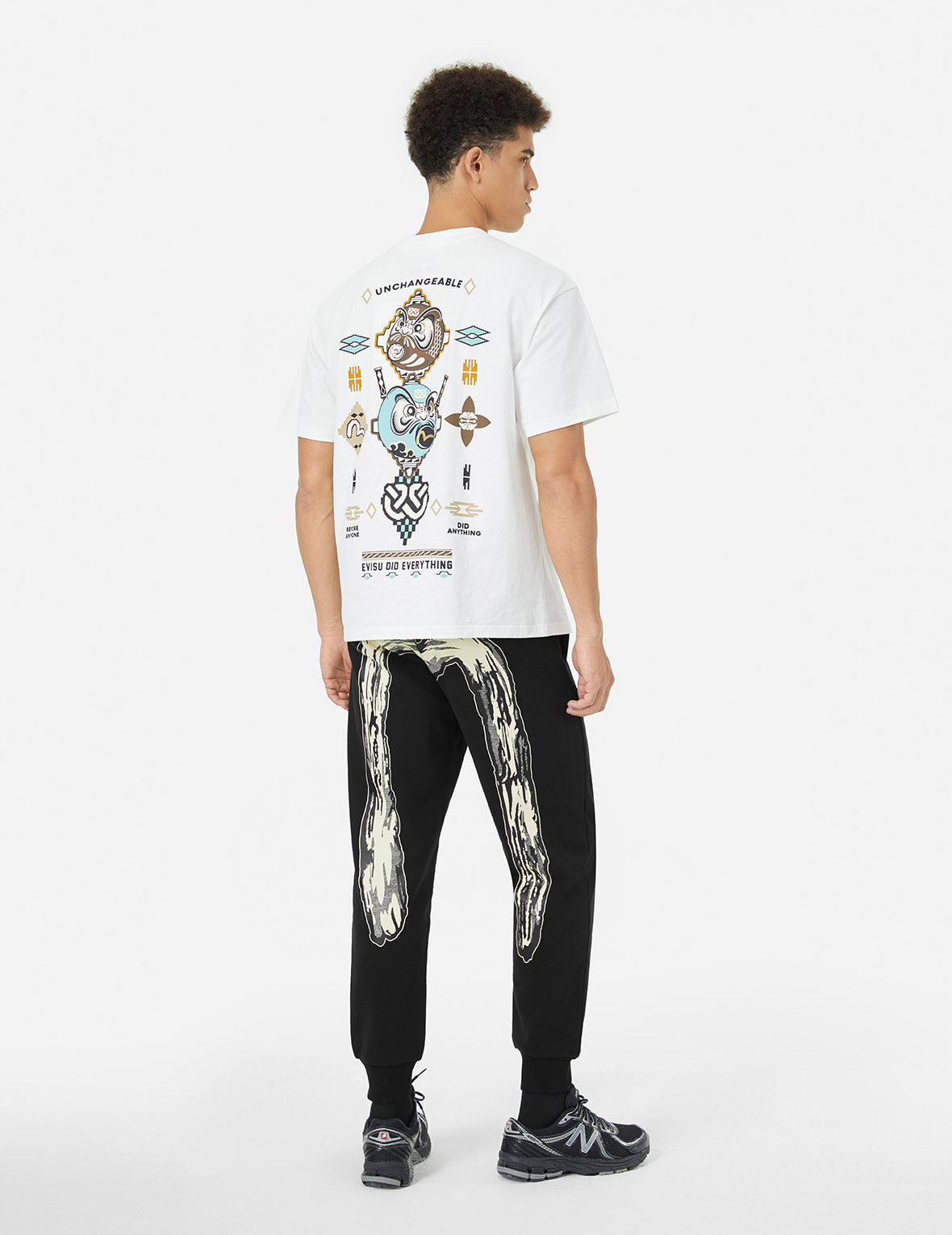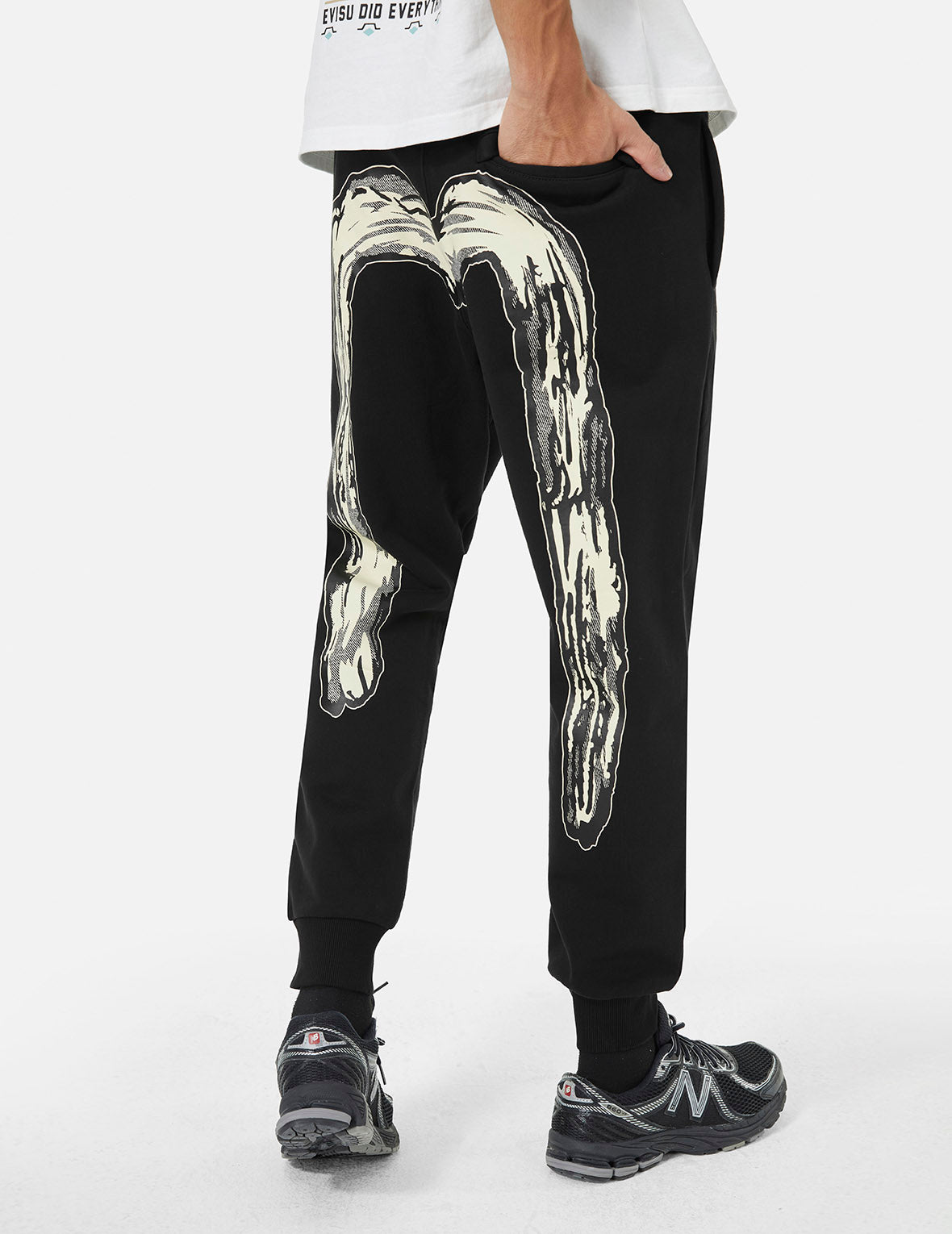 這款運動褲前方飾有海鷗印花,後方則呈現手刷風格的大M印花,整體佈滿筆刷痕跡,充滿了藝術氛圍。